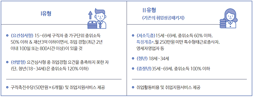 >청년을 제외한 국민취업지원제도 참여자 중 I유형과 II유형 (중위소득 60% 이하 및 특정취약계층)의 참여자로 취업에 성공한 경우