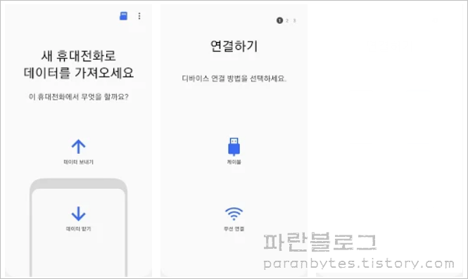 어플을 이용하는 방법입니다. 구글플레이스토어에서 Samsung Smart Switch를 다운로드 받을 수 있습니다.
