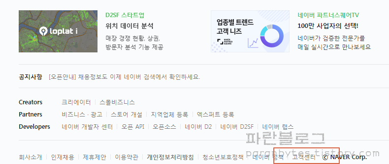 ▼ 네이버 홈의 가장 아래부분 [고객센터]를 클릭합니다.