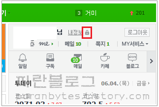 ▼ 로그인 후 [내정보] 옆의 자물쇠모양 [보안설정]을 클릭합니다.
