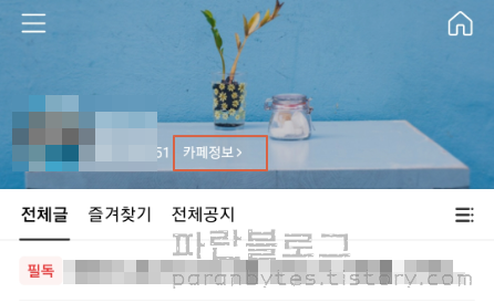 ▼ 네이버 카페앱을 이용하는 방법입니다. 탈퇴하고자 하는 카페에 들어가서 [카페정보]를 클릭합니다.