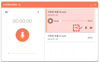▼ 곰녹음기를 이용해 간단한 오디오 편집도 가능합니다. 녹음파일 리스트에서 편집할 파일을 선택합니다. 상세도구창이 열리면 가위모양의 [편집] 버튼을 클릭해 곰사운드에디터를 실행합니다.
