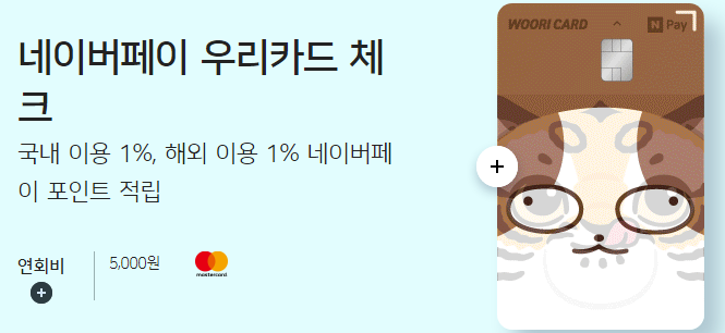현재 발급가능한 N페이 제휴 체크카드인 우리카드 체크에 대해 알아보겠습니다. 2020년 4월 출시되었으며 마스타플래티넘과 국내전용으로 발급 가능합니다.