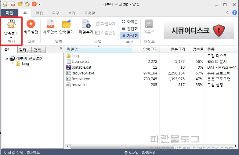 압축해제 후 운영체제에 맞는 파일을 선택해 실행합니다. [Recuva]는 32bit용, [Recuva64]는 64bit용입니다.