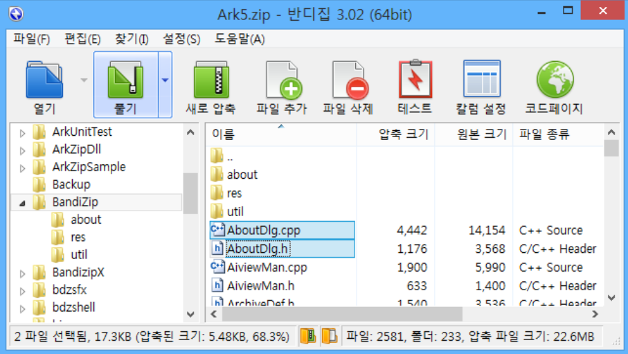 RAR 형식의 분할압축 해제 기능도 제공하므로 상세한 압축해제 기능이 필요한 경우 반디집 사용이 가능합니다.