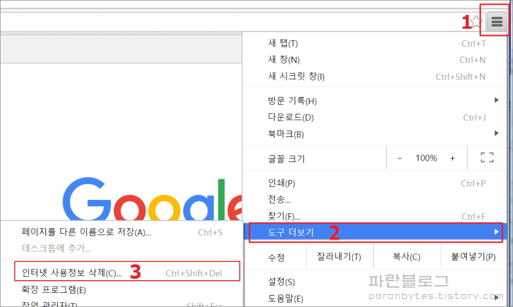 크롬 쿠키삭제 및 인터넷 사용기록 지우기