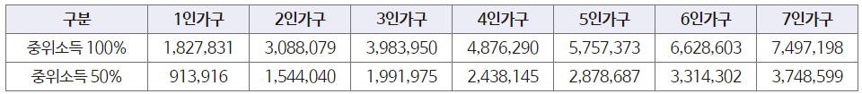 ** 중위소득 50% 산정 기준
