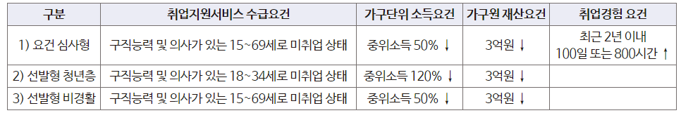 ** 참여자의 소득과 재산에 따라 국민취업지원제도 참여유형이 결정됩니다.