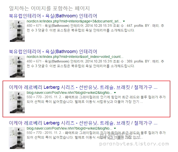 ▼ 검색결과를 내려보니 유사한 욕실인테리어 및 선반에 대한 정보를 포함하는 웹페이지를 표시하고 있어 찾고자하는 정보를 얻을 수 있었습니다.