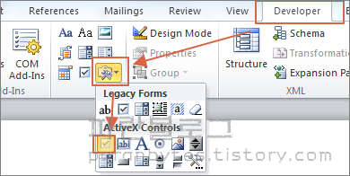 2. 워드 체크박스 만들기-Active X 컨트롤 사용