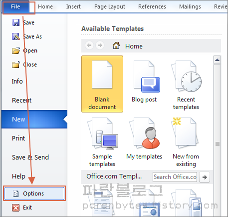 ▼ [파일] 탭에서 [옵션]을 선택합니다.