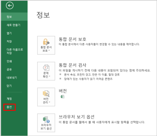 ▼ [파일] 탭을 클릭해 아래부분의 [옵션]을 선택합니다.
