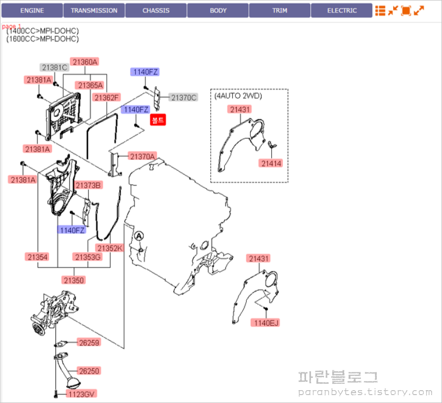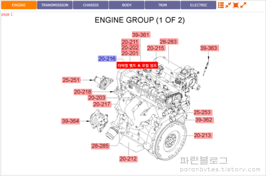 ▼ 부품 카테고리를 선택한 뒤 부품이 포함된 그룹의 번호를 선택해 그룹내 상세 부품을 조회합니다.
