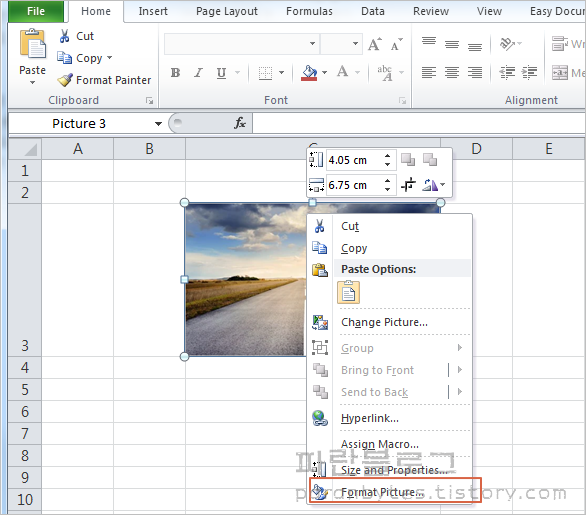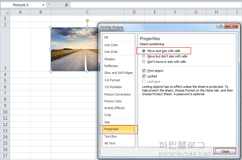 Excel 그림 삽입 및 고정 방법