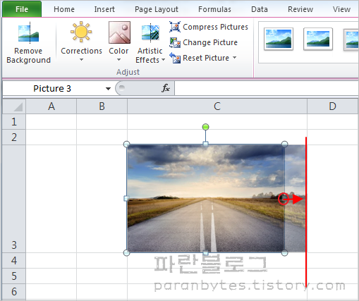 ▼ 삽입한 그림을 셀 크기에 맞게 조정합니다. Alt 키를 누른 상태에서 그림크기를 조정하면 셀 사이즈에 딱 맞도록 조정할 수 있습니다.