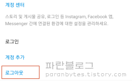 인스타그램 로그아웃 위치
